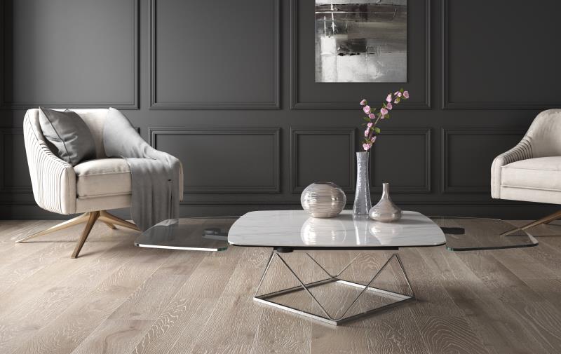 Art as research, ability to imagine, the art of creating. Naos Action Design was a project originally born From an idea of aesthetics of movement and emotion: surfaces open like curtains, like crystal wings,ceramic tops that extend simultaneously, sparkling rotating clogs & gears.